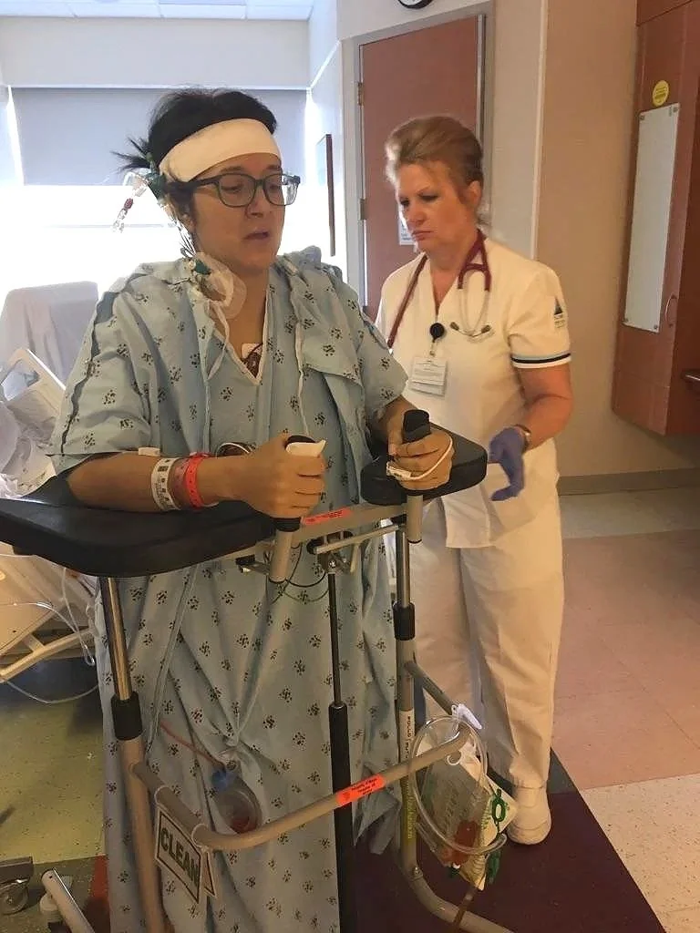 First time walking, 8 hours after transplant surgery